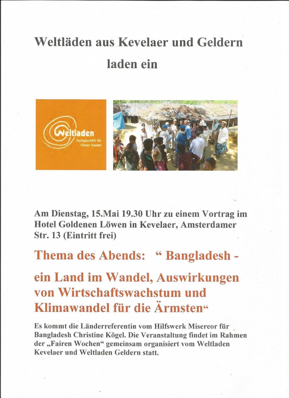 Herzliche Einladung Im Rahmen der „Fairen Wochen“ laden die Weltläden aus Kevelaer und Geldern am Dienstag, den 15.Mai 19.30 Uhr,…