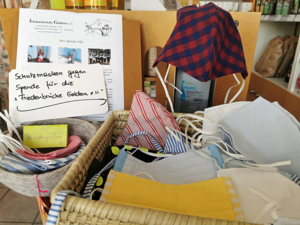 Schutzmasken gegen eine Spende für die „friedensbrücke Geldern e.V.“