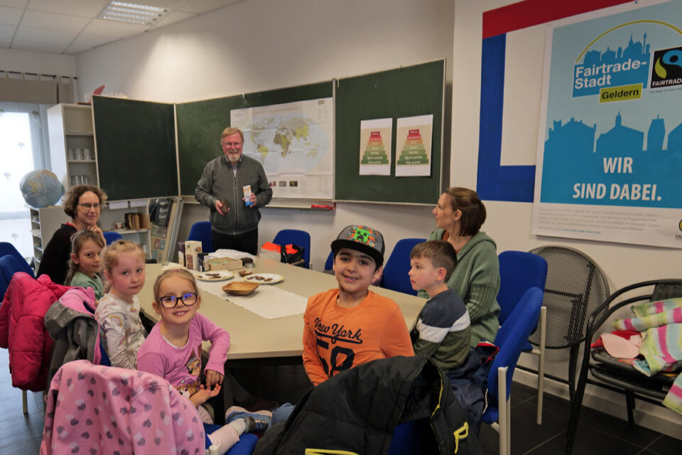 DetailsKinder der Städtischen Kita Drachenhöhle von der Uhlandstraße zu Besuch im Weltladen. Dass Fairtrade auch bei den Jüngsten in…