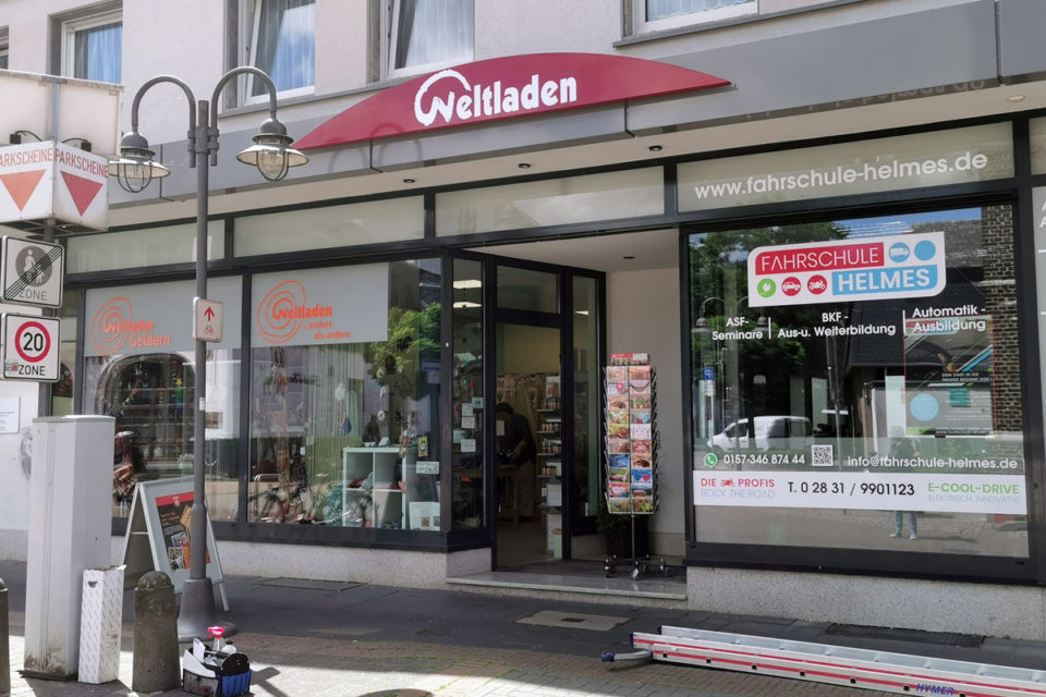 Weltladen mit neuer Werbegestaltung – ein Blickfang