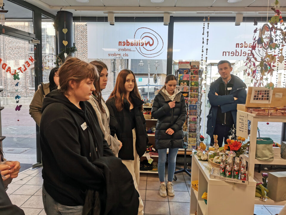Im Rahmen ihrer Firmvorbereitung besuchte eine Gruppe um Pastoralreferent Jarek Weisser den Weltladen. Hedwig Gerads und Manfred Austrup…