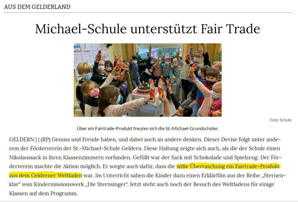 Die Kinder der Michaelschule erhielten im letzten Jahr fair gehandelte Nikoläuse. Sie setzten sich durch Filme, Broschüren und Berichte…