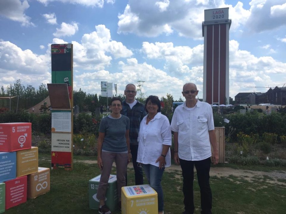 Weltladenmitarbeiter im Weltgarten auf der LaGa