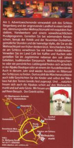 Auch 2024 waren wir wieder dabei. Das 1. Adventswochenende gehört immer dem stimmungsvollen Weihnachtsmarkt vor dem Schloss. Wir präsentieren dann unser weihnachtliches Angebot an Süßigkeiten und außergewöhnlichen Handwerksartikeln.