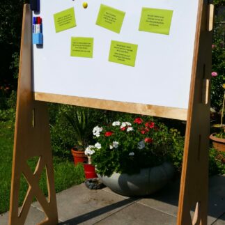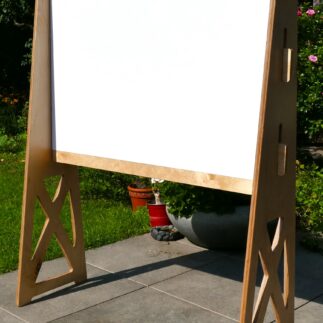 Die Magnettafel ist ohne Werkzeug, und mit etwas Geschick auch allein, aufbaubar und kann leicht in einem PKW transportiert werden.