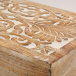 Diese besonderen Aufbewahrungsboxen aus Mangoholz, von Hand verziert mit kunstvollen Schnitzereien, sind ein einzigartiger Hingucker. Sie passen wunderbar zu einem natürlichen Einrichtungsstil, zu Boho oder Shabbi Chic und eignen sich, um allerhand Kleinigkeiten organisiert aufzubewahren. Ob Nähzubehör, Kosmetik, oder Urlaubsschätze vom Strand.