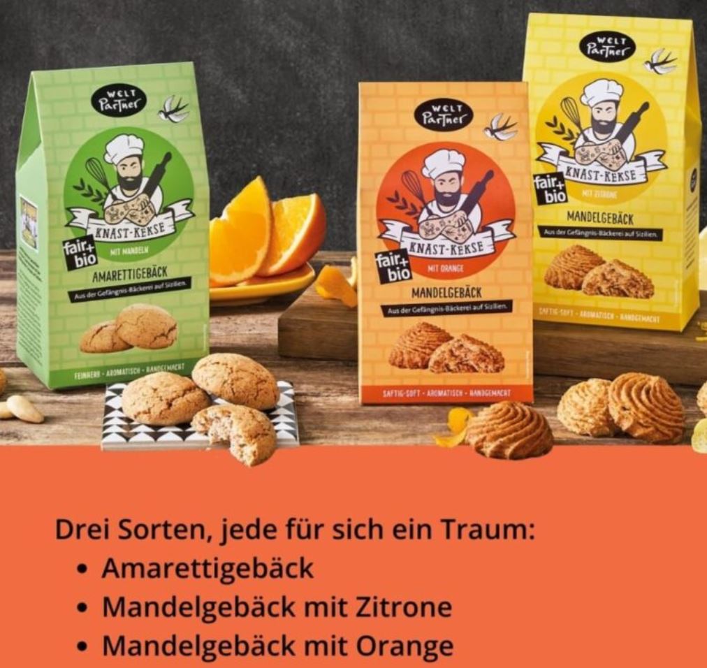 Gebacken wird mit hochwertigen, fair+bio-Zutaten: Mandeln, Zitronen und Orangen von italienischen Kleinbäuer*innen, Zucker von Manduvirá. Das Ergebnis sind handgemachte Kekse mit Charakter – und mit Wirkung weit über den Geschmack hinaus.