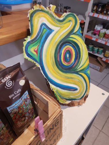„Die Musik und Malerei gehören zusammen. In beiden Fällen redet man über die Tonart, Striche, Dynamik und Rhythmus. Empfindet man das in der Musik, so ist es leicht diese Elemente in Malerei zu sehen und zu wiedergeben.“